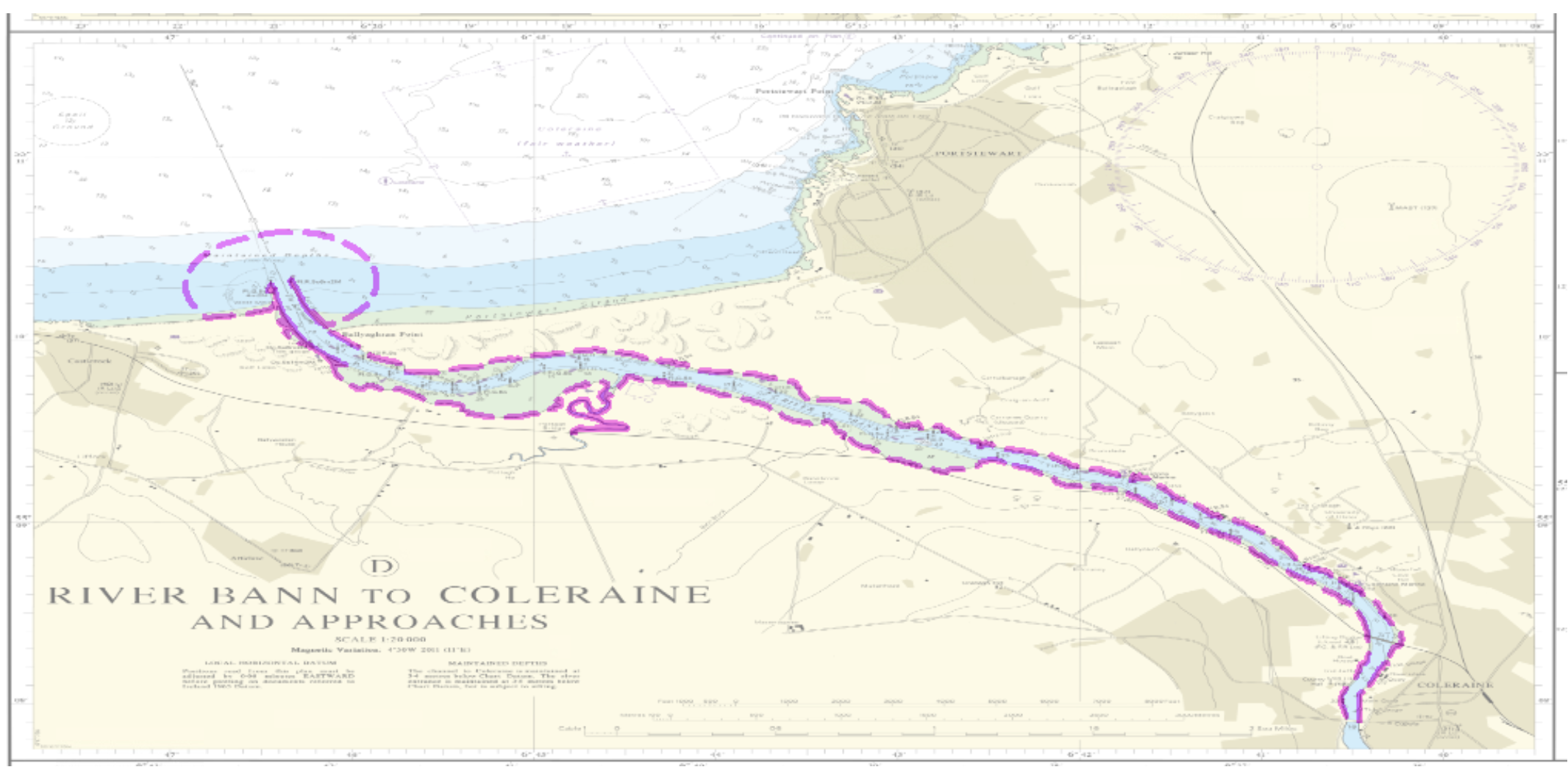 COLERAINE HARBOUR COMMISSIONERS ARE THE NAVIGATION AUTHORITY FOR THE RIVER BANN ESTUARY AS PROVIDED UNDER LEGISLATION IN THE RIVER BANN NAVIGATION ACT 1879, OUR HARBOUR AREA COVERS AN AREA FROM THE ‘OLD BRIDGE’ COLERAINE TO A DISTANCE 500M ON THE SEAWARD SIDE OF THE BARMOUTH BREAKWATERS AND EXTENDS UP TO MEAN HIGH WATER SPRING TIDE.